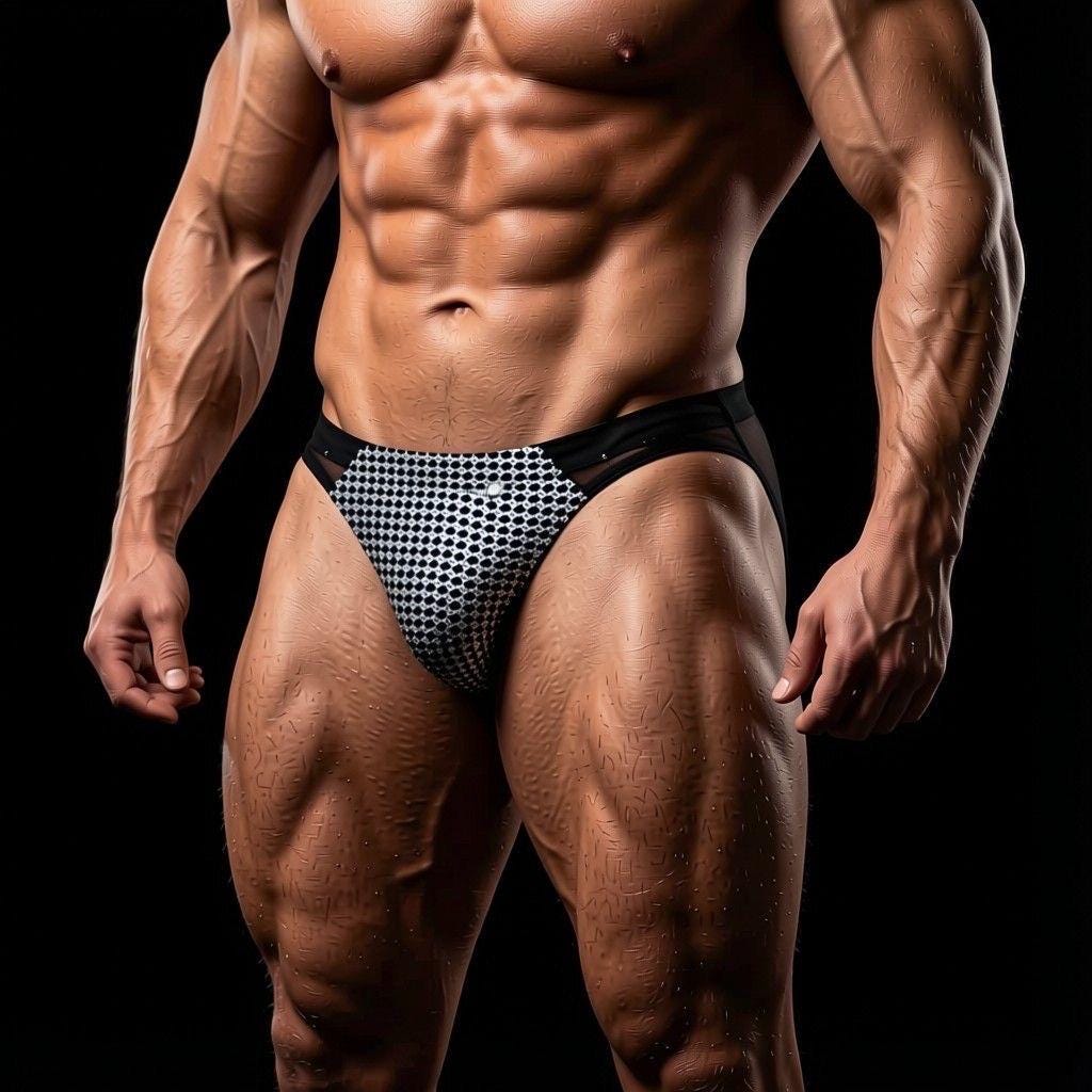 Barbedwire Print Holographic Lycra Pouch, Mesh Rear, 4-Way Stretch
