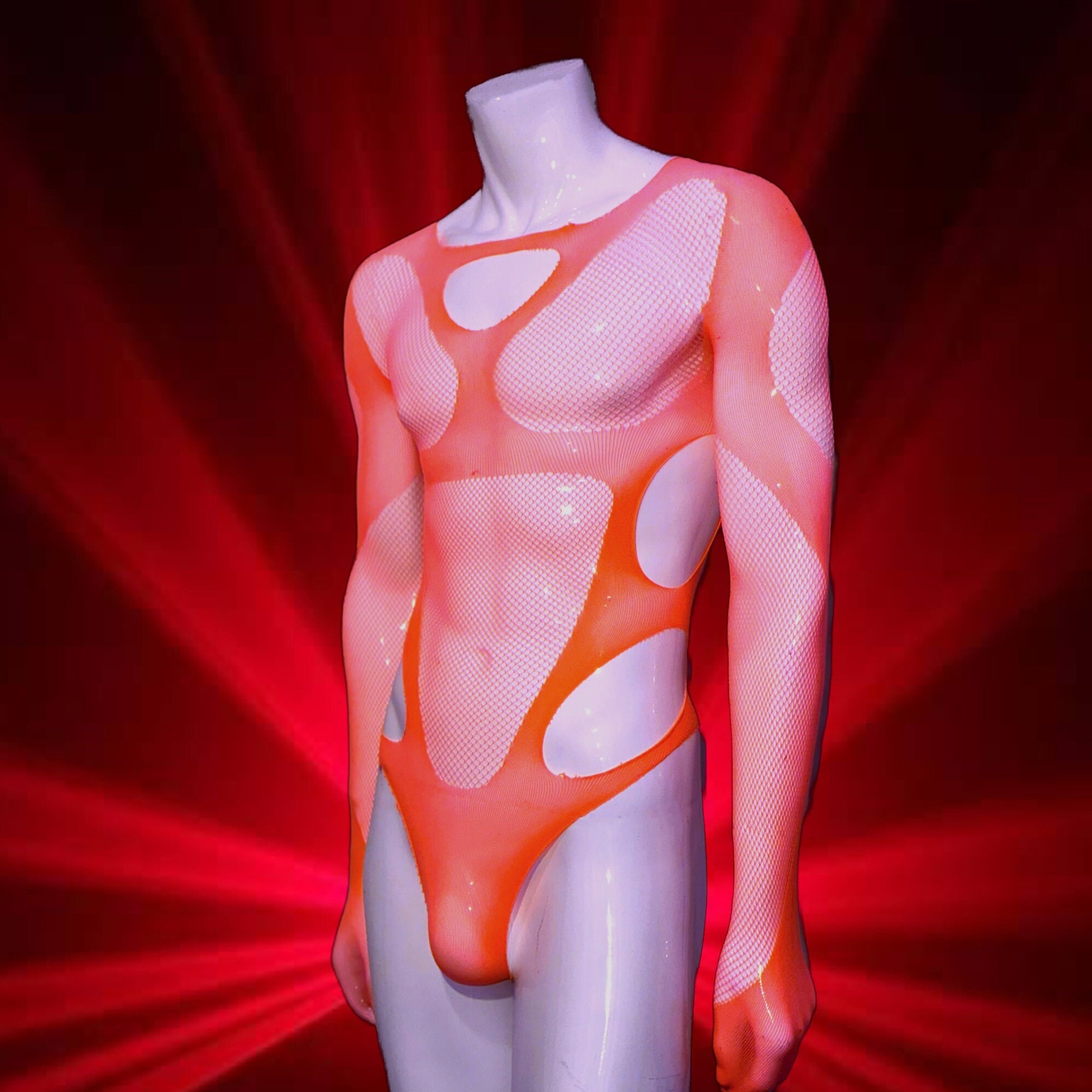Our sexy mens Bodysuit Bodystocking is made with relatively light fabric, so it is necessary to be careful when wearing or washing. Don't pull too much. Any excessive tugging or aggressive pull will cause the item to tear. It is better to wash by hand in the water gently. Washing by machine is not recommended.