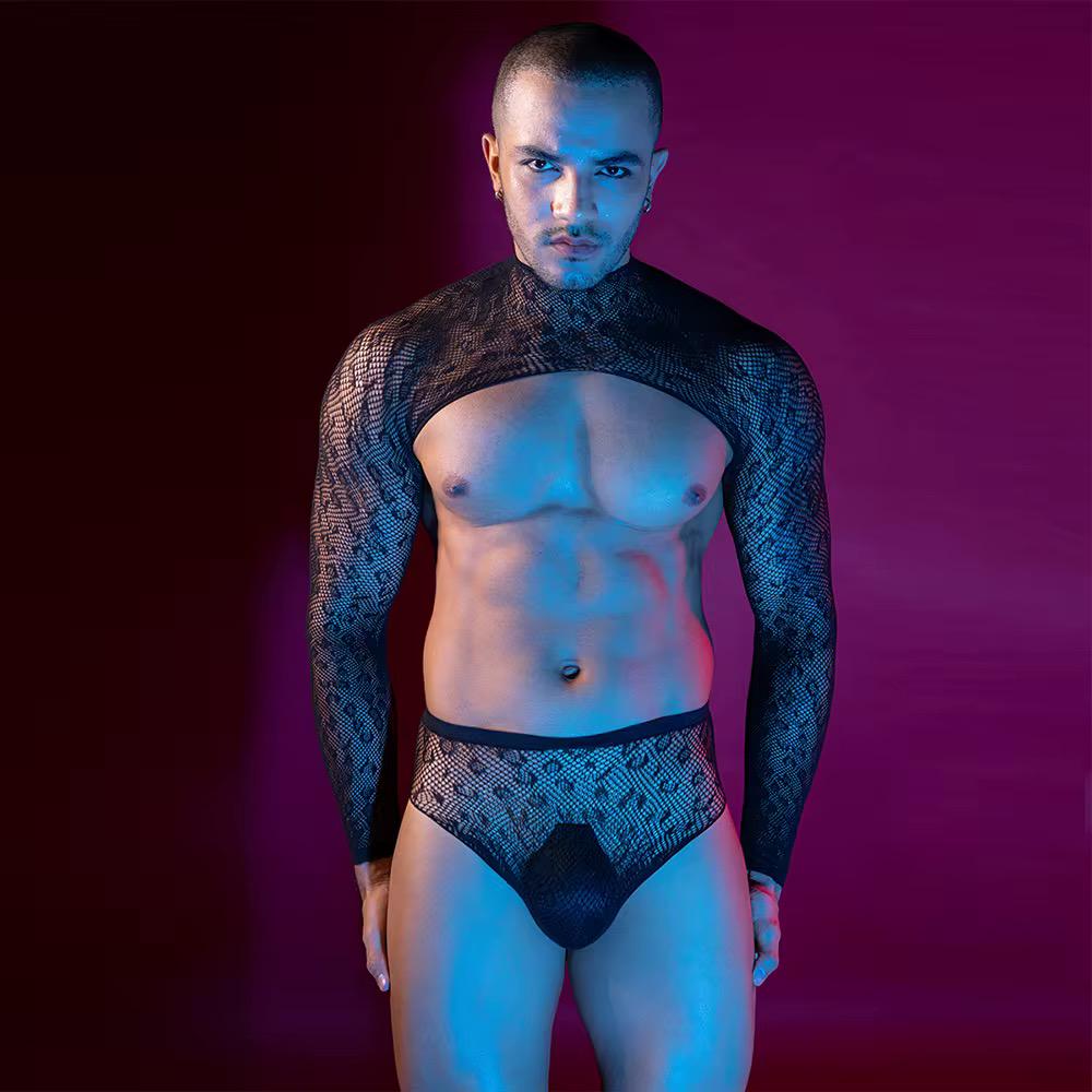 Sheer Leopard Print Underwear, Fishnet Lingerie for Men, Crop Top, One Size Fits All